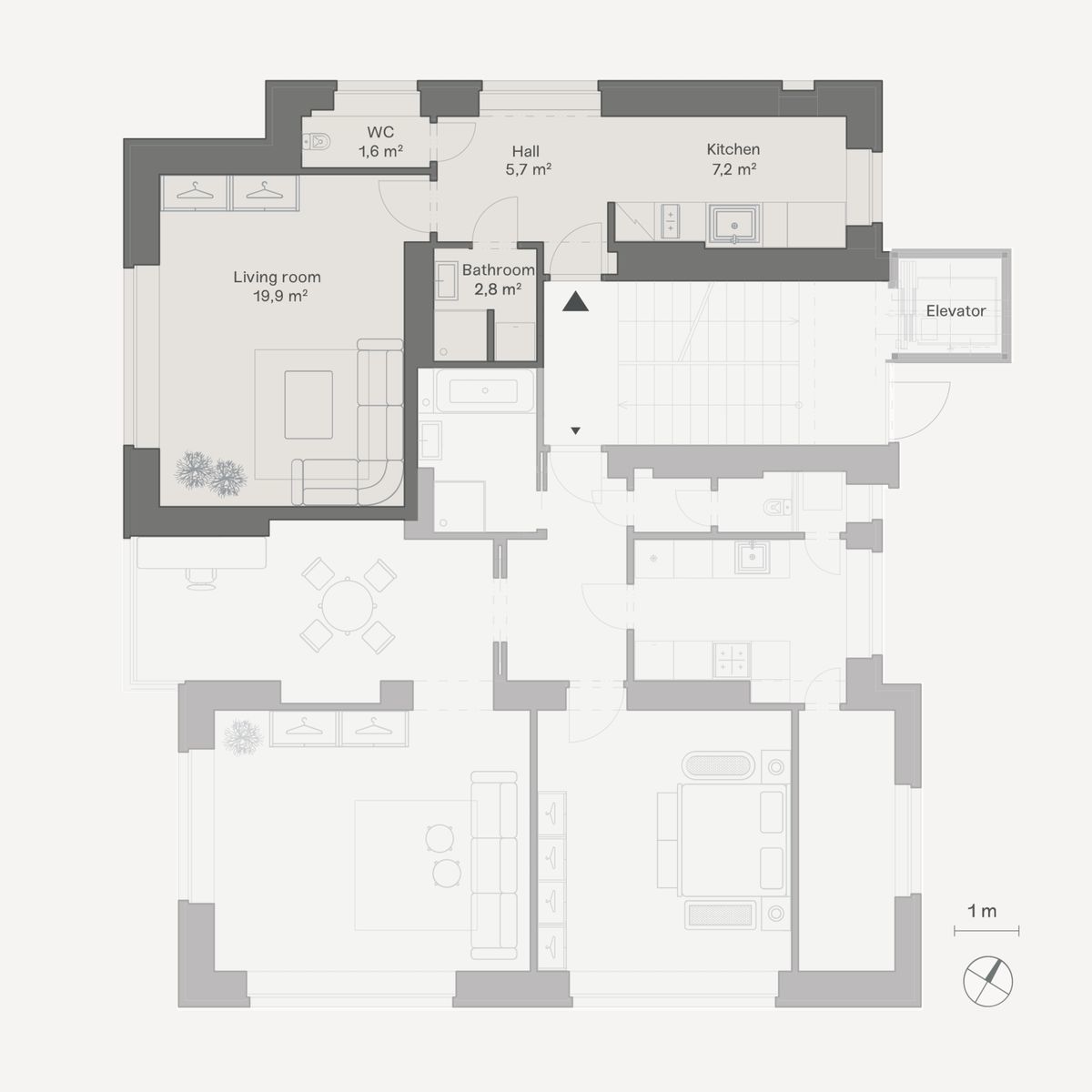 Apartment CardApartment number | Floor | Layout | Floor area | Total area | Terrace | Parking space | Orientation | Room height | 7 | 2 nd floor | 1+1 | 39 m2 | 39 m2 | - | 1 | NW | 2930 mm |